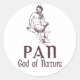 The Greek god of shepherds and flocks, he is a son of the god Hermes. Pan was depicted as a satyr with a reed pipe, a shepherd's crook and a branch of pine or crown of pine needles.
