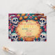 Say ¡hola! to *Pan de Party*, the Día de los Muertos invite that’s baked with tradition and frosted in fiesta. With sugar skulls, candles, and pan de muerto front and centre, this card serves up celebration with a side of sweet mischief. The swirling colours and playful layout set the mood for a night of music, memory, and marigold magic. The front dishes out all the party details—date, time, location, and costume rules—while the back is yours to customise with RSVP info, cheeky notes, or a warning about ghostly snack thieves. BYOD: Bring Your Own Dulces.