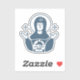 Sticker featuring a simplified version of the Platytera icon, that is the Theotokos "More Spacious than the Heavens" because she held God in her womb