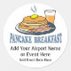 Pancake Breakfast Graphic Shirts, Aprons, Tees, Hats, Mugs, etc. will be a big success at all Aviation Fly In events. The generic pancake graphic can also be used for Church, School & Scout fundraiser & charity events. Purchase extra Stickers, Buttons, Magnets & Key Chains to sell at events. Add your own text to promote your own event.