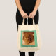 The printing came out very well, better than I had anticipated. The natural color fabric is sturdy with strong seams and comfortable handles. This tote fits easily over my shoulder. As it is filled, the bottom flattens out--very cool! I would buy this product again. This grocery tote holds a lot of groceries! The image quality was very good. The colors were a little darker than I had expected. The darkness may have been due to printing on a natural color fabric rather than on white. The cat design is attractively centered on the tote. The spirit of the design is very lively, just as it appears on the Zazzle website.