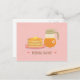 A postcard with a cute doodle of pancakes and maple syrup, the food pairing that is perfect together. Text reads "We are perfect together!" with two hearts.