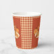 Fun paper cups for any fall celebration (including Thanksgiving) featuring some yummy pumpkin spice pancakes on a reddish-brown and ochre Buffalo plaid pattern . Choose your cup size (8 or 12 oz) . Add a lid if you wish to . Check out our collection for matching paper plates .