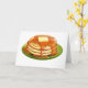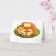 This design is a plate full of delicious looking pancakes. On the plate is three pancakes with maple syrup running over them and a bit of butter melting on the top. They look so delicious. This pancakes design looks great on these greeting cards