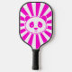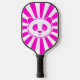 Pink Panda Bear. Big panda face in pink and white with ray stripe background. Perfect for animal lovers or for anyone who wants to add a fun touch to your game with this sweet cuddly and unique Chinese giant panda pickleball paddle