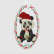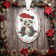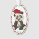 This is a cute Christmas ornament for any child who loves panda bears. A wide eyed black and white panda holds a candy cane and wears a Santa hat. Below the image is your special child's name in green. The image is framed with a pretty red, green, and white candy cane stripe pattern. The back of the ornament has the same striped frame, and more text fields for you to customise. This design works well for a boy or a girl, and can be for a son, daughter, grandchild, or any child!
