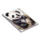 Watercolor artwork of a cute panda bear in a bamboo tree.