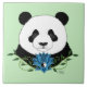 Panda Bear Lotus Flower Blue Ceramic Tile
