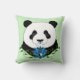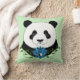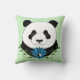 Portrait of a cute Panda bear with a blue lotus flower in a backdrop of green