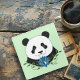 Portrait of a cute Panda bear with a blue lotus flower in backdrop of green