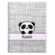 This cute notebook has a black, white and purple panda bear design and the name or text of your choice.