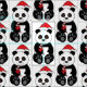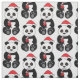 Panda Bear Snacking on Bamboo at Christmas Fabric