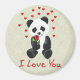 This adorable little Panda Bear holds a red rose and has tiny red hearts floating behind it. Text says: "I Love You." Great Valentine for young, old, big and small alike. Get one for yourself too.