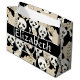 These two personalised and stylish glossy gift bags were simply ideal to carry wedding gifts wrapped in the matching gift wrapping paper. The customised text printed on the gift bags was precisely as ordered and while the photo does not quite do the gift bags justice, rest assured they look fabulous. The gift bags were securely packaged for safe transit arriving undamaged and it was a speedy turnaround from ordering to delivery. Thank you Zazzle for another 5-star transaction in every way!