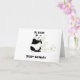 A large Panda eating bamboo leaves.Change the name on front and add to inside message.Inside message asks that recipient has a good time, eats lots of cake, but leaves the bamboo alone.