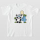 100% cotton so perfect for summer, It is a nicely designed t-shirt, the fabric is soft and the seams finished well, the body of the t shirt has no side seams. I bought a medium size for my two grandsons, aged 9 and 8 it will be slightly big on them but I would rather that than too small