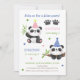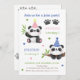 Cute baby panda kids birthday invitation featuring two adorable panda wearing party hat with a panda footprint and surrounded by stars.
