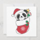 The panda at Christmas with a Santa hat. Funny animals with Christmas stocking and snow for the holidays. Pandas are cute animals and perfect for Christmas.