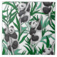Hand- drawn pattern with giant panda cubs climbing branches and bamboo leaves.