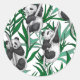 Hand- drawn pattern with giant panda cubs climbing branches and bamboo leaves.