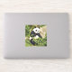 An illustration from a photograph of a panda eating bamboo printed on a sticker.