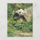 A beautiful photograph of a cute panda eating bamboo printed on a postcard.