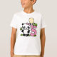 Fifth Birthday cute panda girl with pink bow, holding bamboo leaves and a yellow balloon, text reads "I'm 5" with big pink 5.