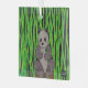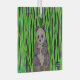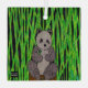 Drawing of a panda sitting surrounded by bamboo.