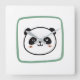 A cute painted-style panda with soft blushing cheeks, framed by a cool green square in a playful minimalist design.