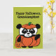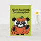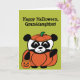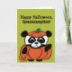 Our cute little black and white panda friend wants to help you say Happy Halloween to a fantastic little boy or girl. He's wearing an adorable orange pumpkin costume with a green stem on his hat and carrying an orange jack-o-lantern treat bag. The background is solid spring green. A great surprise for someone who loves panda bears or pumpkins and autumn. A cute, whimsical art illustration drawn by artist Bethany J. Mitchell of Darcy Place Studio. More about our art and artists at www.darcyplacestudio.com. Click the CUSTOMIZE IT button to change the text on the front of the card to personalise with someone's name or relationship to you.