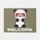Panda Welcome Mat Dome Decor. Cute Panda Bear home mat with Red Glasses. Funny Panda Bear welcome mat. Customise your text, colour, style on your Panda Bear Welcome Mat to match your home decor.