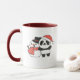 Panda with snowman in winter for Christmas - a snowman for winter and Christmas. A winter greeting in the cold season for the holidays. Christmas panda with snowman.