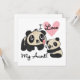 Two panda bears, one small and one adult, a pink heart, pink flowers, and text that reads I Love My Aunt on panda bear T-shirts, bags, mugs, buttons, cards, and other items.