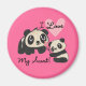 Two panda bears, one small and one adult, a pink heart, pink flowers, and text that reads I Love My Aunt on panda bear T-shirts, bags, mugs, buttons, cards, and other items.