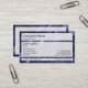 A business card template with a three panelled design on the front, with a header, body and footer layout for all the main details. On the reverse of the card there is a single main panel which can be used to add additional details and or images or left blank providing a useful note panel. This version has an image texture in the background with semi transparent white panels allowing the texture to show through without detracting from the clarity of the text. This template can also be further customised, e.g. a logo could be added to the left in the header panel, the fonts and background colour can also be changed. Suitable for many types of business. A growing range of other variations of this template are also available.