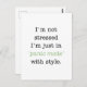 Me, stressed? Never. A good print or postcard to make you chuckle when you want to sarcasm your way out of stress!