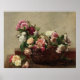 "Panier de Roses" by Henri Fantin-Latour is a breathtaking still life featuring a delicate arrangement of freshly picked roses resting in a wicker basket. The soft pastel hues of the petals contrast beautifully with the deep greens of the leaves, creating an atmosphere of elegance and timeless beauty. Fantin-Latour's signature attention to detail and masterful use of light make this painting a true celebration of floral art.