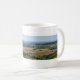 A beautiful panorama of a rural German landscape with harvested fields and trees, and a town in the distance.