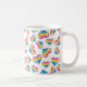 This pattern features pink, yellow, and blue hearts on a white background. Ideal design for pride.