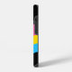 Beautiful pansexual pride iPhone 14 case gift on a bold black background for a panromantic friend featuring the pretty pan flag colours shaped into a pink, yellow, and blue rainbow. A cool custom queer phone cover present for the LGBTQ community.