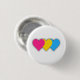 Classic Round Button with hearts design in colours of pansexuality; pink, yellow and blue stripes pride flag, rainbow love design