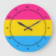 Round wall clocks with pansexuality pride flag with pink, yellow and blue stripes, striped pattern design
