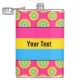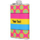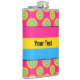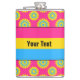Vinyl-wrapped flask with the pansexuality pride flag and a seamless modern geometric flower pattern in the colours of the pride flag; a pink, yellow and blue pan pride design on a pink background with an editable text template for your name or message