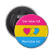 Bottle opener with the pansexuality pride flag with little hearts in the centre of the design. Pink, yellow, and blue flag of the pan pride movement; with an editable text field for your name or message