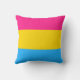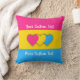 Throw pillow with the pansexuality pride flag with little hearts in the center of the design. Pink, yellow, and blue flag of the pan pride movement; with an editable text field for your name or message