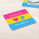 Paper square coaster with the pansexuality pride flag with little hearts in the centre of the design. Pink, yellow, and blue flag of the pan pride movement; with an editable text field for your name or message