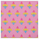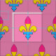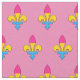 Fabric with a seamless pattern with fleur-de-lis in the colours of the pansexuality pride flag, on a pink background; bi pride crafting supplies