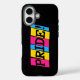 Phone case for Apple iPhone with text in the colours of the pansexuality pride flag. Pink, yellow, and blue flag of the pan pride movement