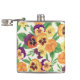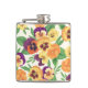 Pansies on off white hip flask