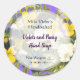 Custom soap, baking or craft stickers with purple script and black blocky letters on beautiful blooming purple, yellow and blue botanical violets and pansy flowers.